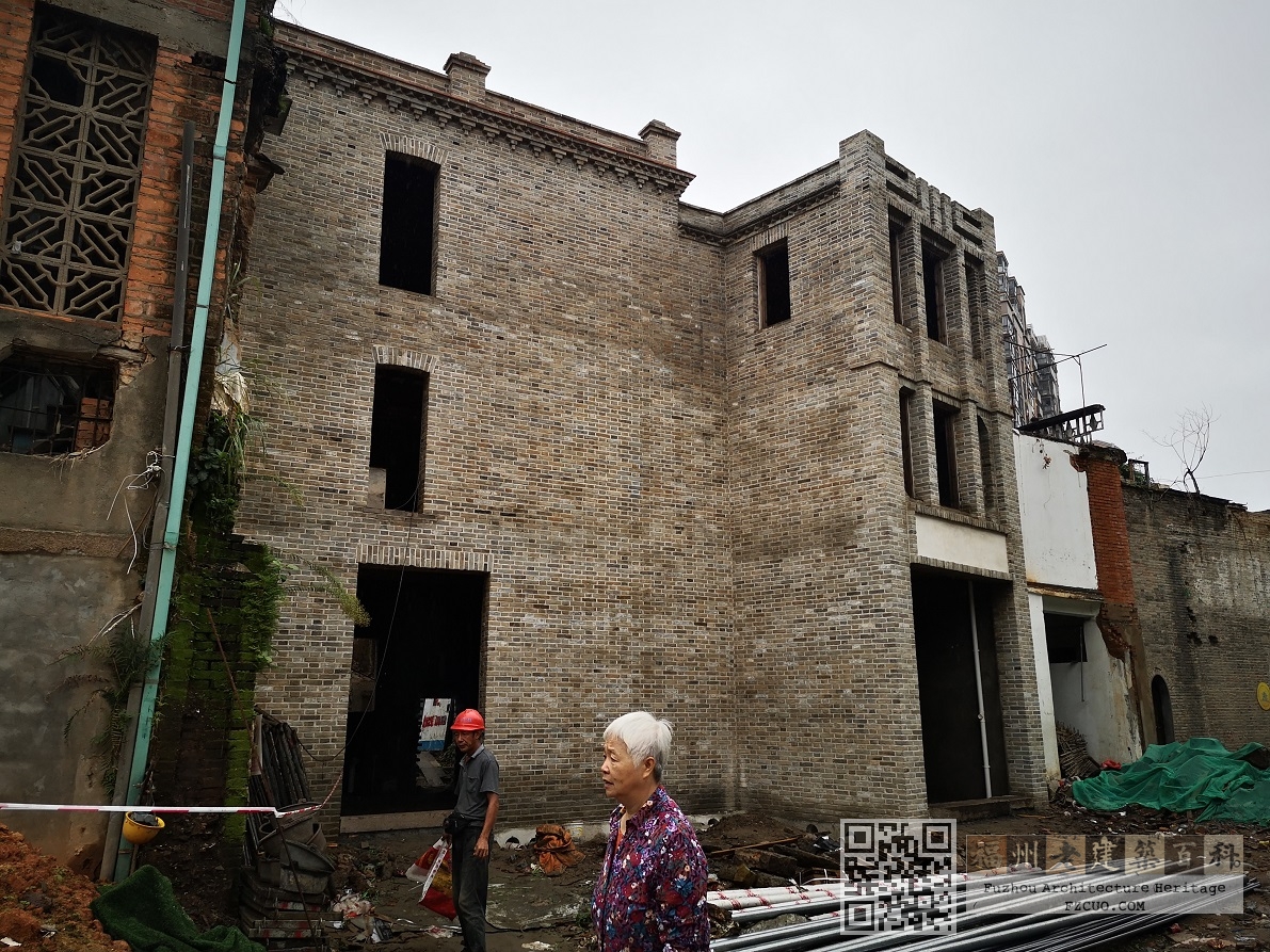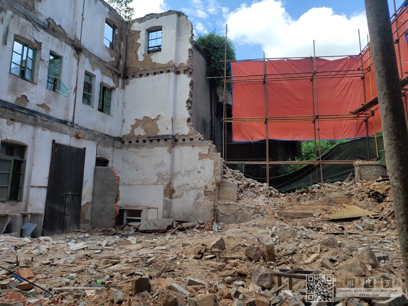 原位于仓山区上藤路110号,建于民国时期。从建筑形态及手法判断,应晚于1920年。主体为三层砖木结构、青砖砌筑的建筑,沿上藤路街面为一开间店铺,店后为住宅。建筑整体风格朴素,二层窗的两侧小窗带有弧线造型,窗框、窗棂有木构几何图案装饰,较有特色。根据2005年普查资料,该建筑原为华侨产业,建国后为“临江物资回收商店”,后为直管公房。2020年7月初,因上藤路拓宽被拆除,并在原址西侧不远处重建。责任单位为福州古厝集团。